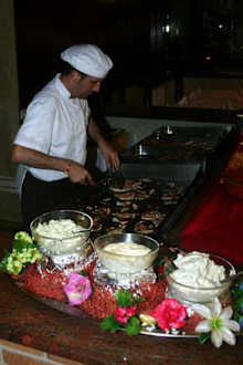 Am Grill im Hotel Festa Brava wird tgl. am Abend Fleisch und Fisch frisch zubereitet