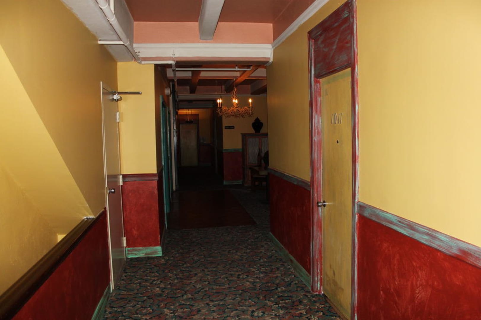 Hotelflur mit Fahrstuhl im Hintergrund