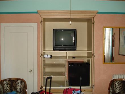 Zimmer mit Kühlschrank und TV