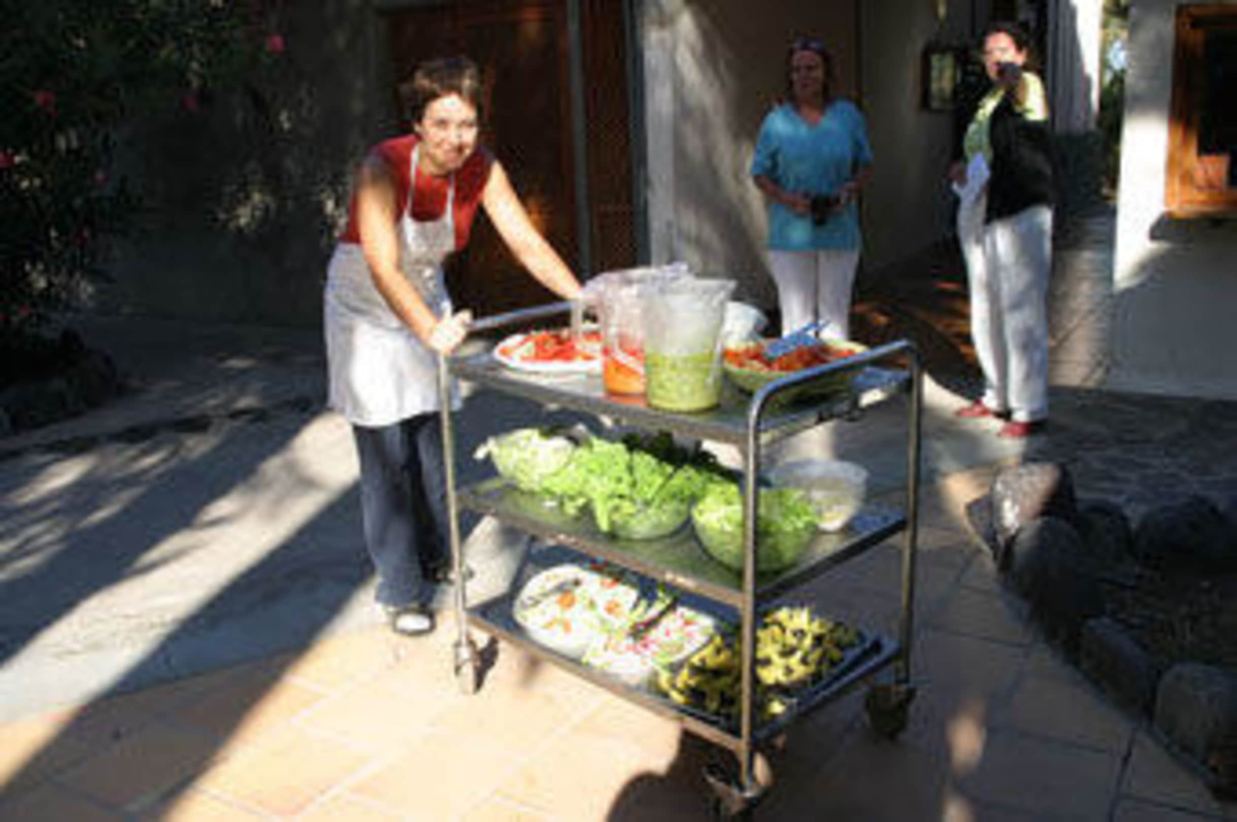 Die nette Praktikantin beim Aufdecken des Abendbuffets