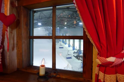 Blick vom Restaurant auf die Skihalle