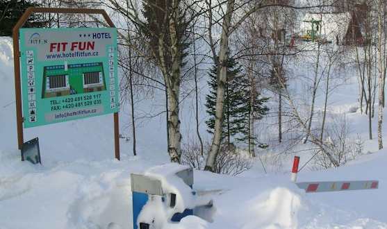 Tschechien - Harrachov - Hotel Fit Fun Die Schranke war kaputt und zeigte deshalb nach hinten, anstatt über die Einfahrt zum Hotel. Die Gebühr für einen bewachten Parkplatz wurde trotzdem gefordert.