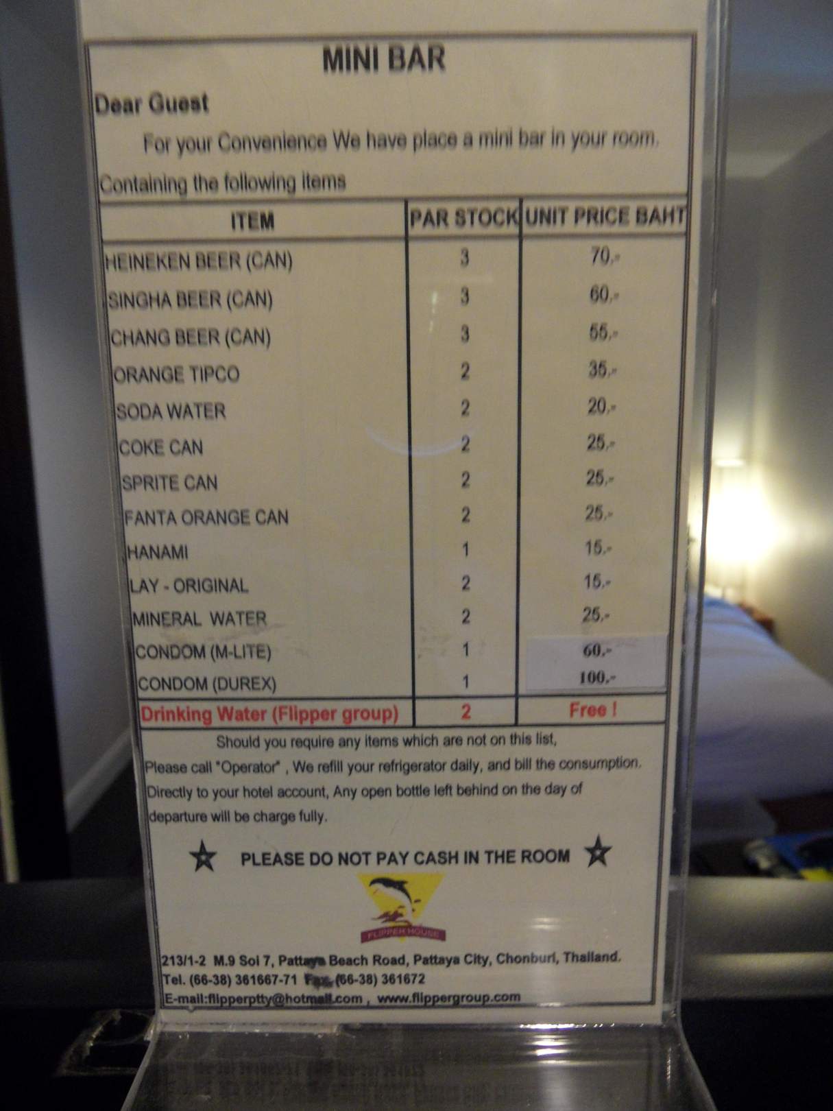 Minibar-Preisliste