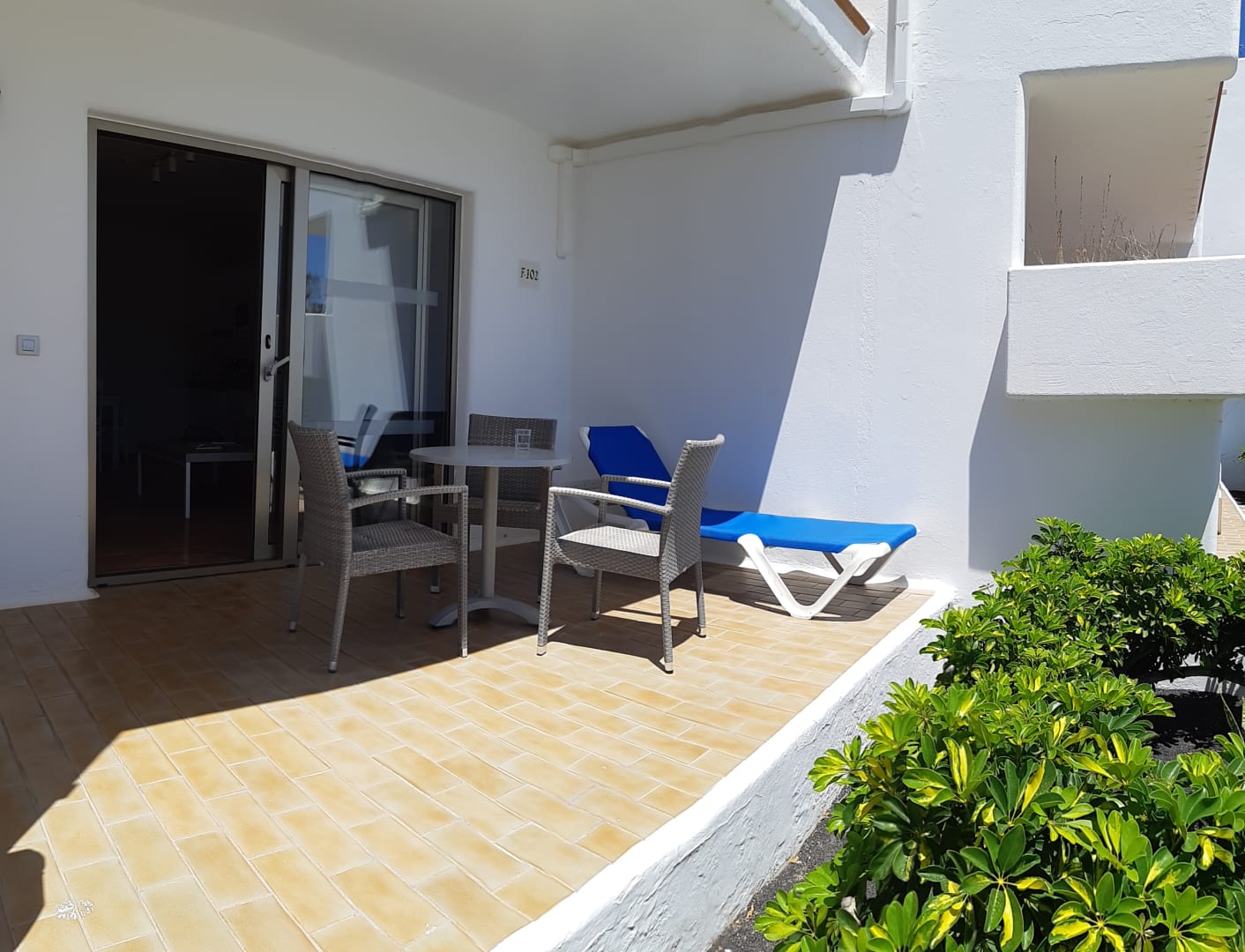 Schöne große Terrasse mit Tisch u. 3 Korbstühlen - und Platz für 2 Liegestühle