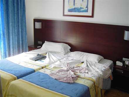 SchlafzimmerDoppelbetten, gute Matrazen, "nur" Wolldecken, bei einem 2-Raum Schlafzimmer App. ein Zimmer mit Tuer (kein Balkon), ein Zimmer mit Spiegel und Safe, grosser Kleiderschrank m. Schiebetueren, wenn keine Klimaanlage, dann grosser Ventilator an d. Decke