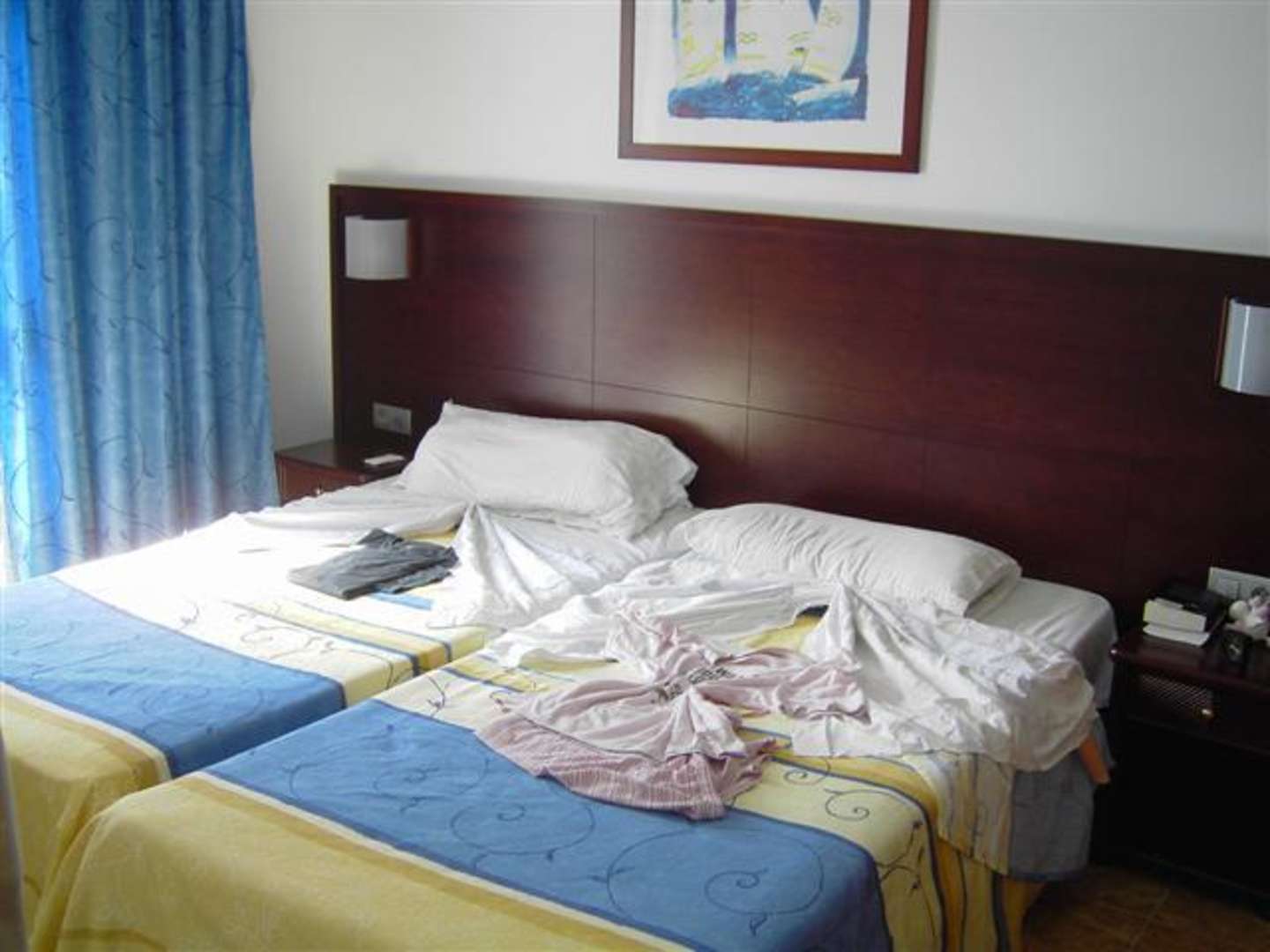 SchlafzimmerDoppelbetten, gute Matrazen, "nur" Wolldecken, bei einem 2-Raum Schlafzimmer App. ein Zimmer mit Tuer (kein Balkon), ein Zimmer mit Spiegel und Safe, grosser Kleiderschrank m. Schiebetueren, wenn keine Klimaanlage, dann grosser Ventilator an d. Decke