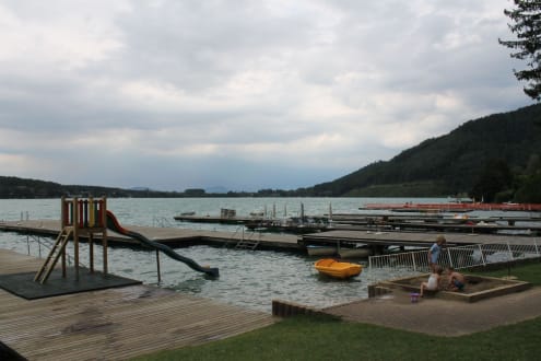 Hoteleigener Badestrand mit Kinderrutsche