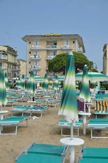 Blick vom Strand zum Hotel