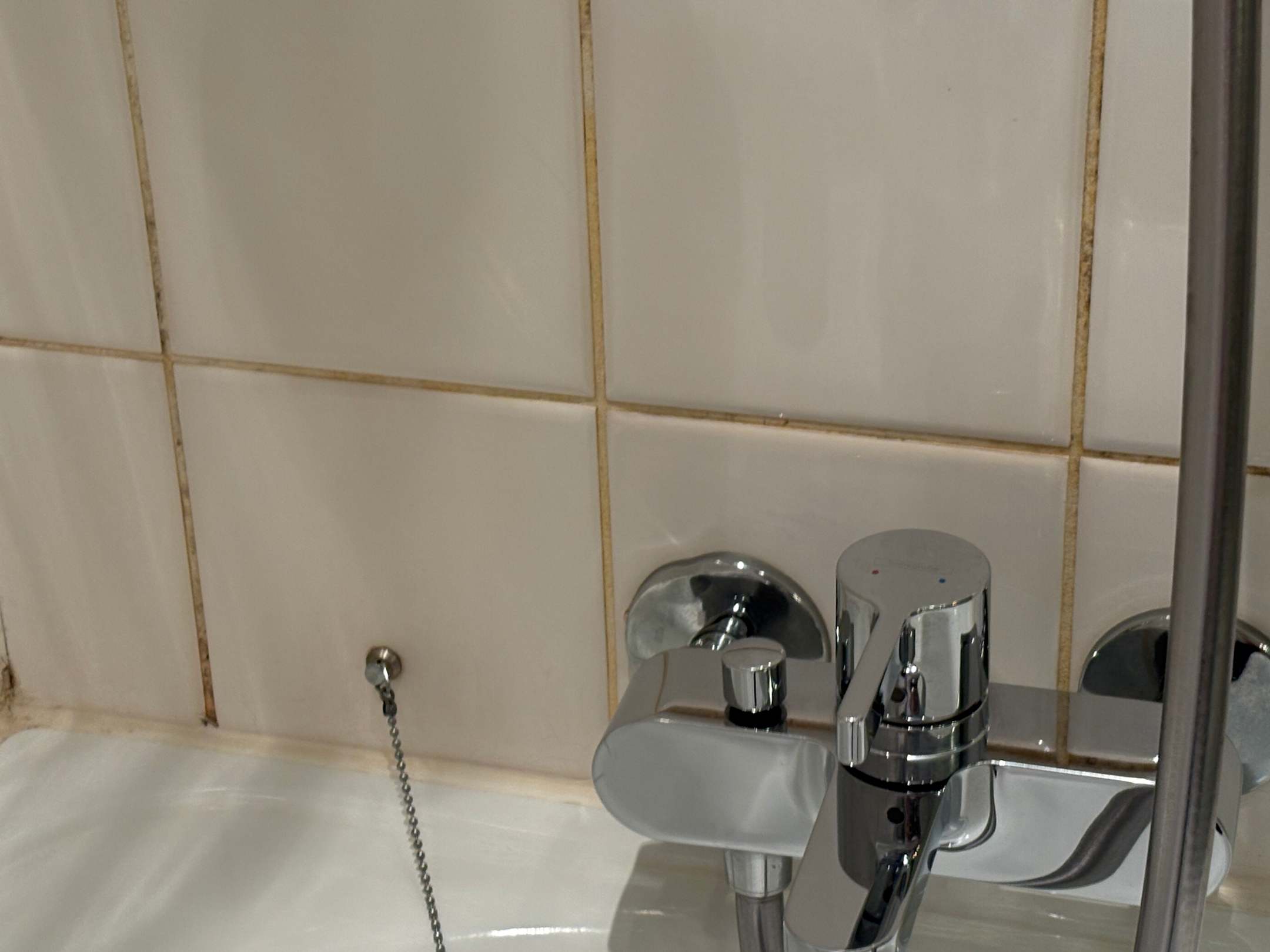 Ablagerungen zwischen den Fliesen. Sehr unangenehm
