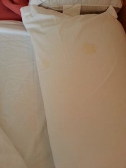 Gelbe Flecken !Unübersehbare gelbe Flecken auf dem Kissenbezug direkt bei Anreise.