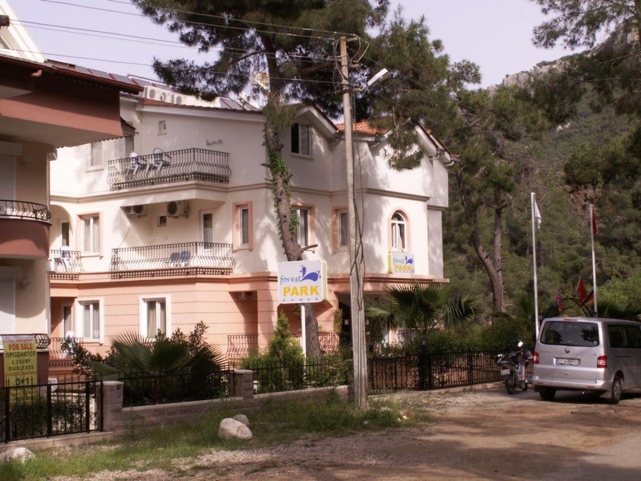 Vorderansicht Forrest Park mit Hoteleigendem VW Bulli