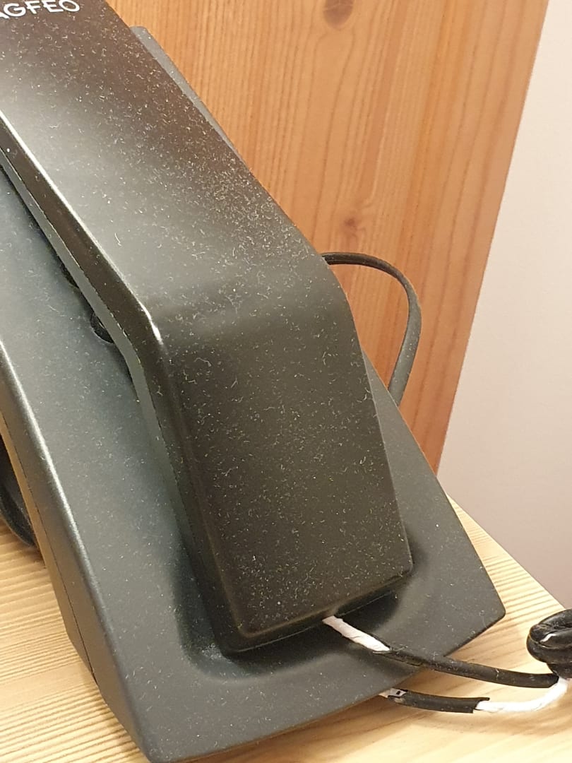 Telefon und Lichtschalter verdreckt. Telefonkabel nicht richtig isoliert.