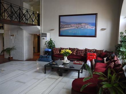 Die Sitzgruppe befindet sich schräg gegenüber dem Empfang direkt benen dem Eingang. Vor der Sitzgruppe ist die einizge Möglichkeit, sein Gepäck "aufzubewahren" bei zu früher oder später Abreise...