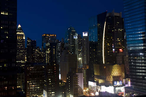 Ausbilck auf Skyline vom 28sten Stock bei Nacht
