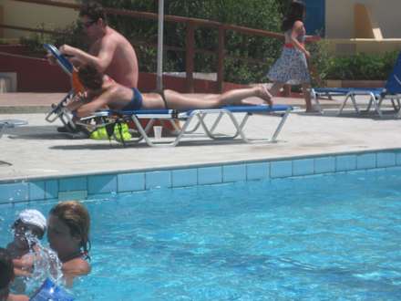 Sonnenliegen und Pool
