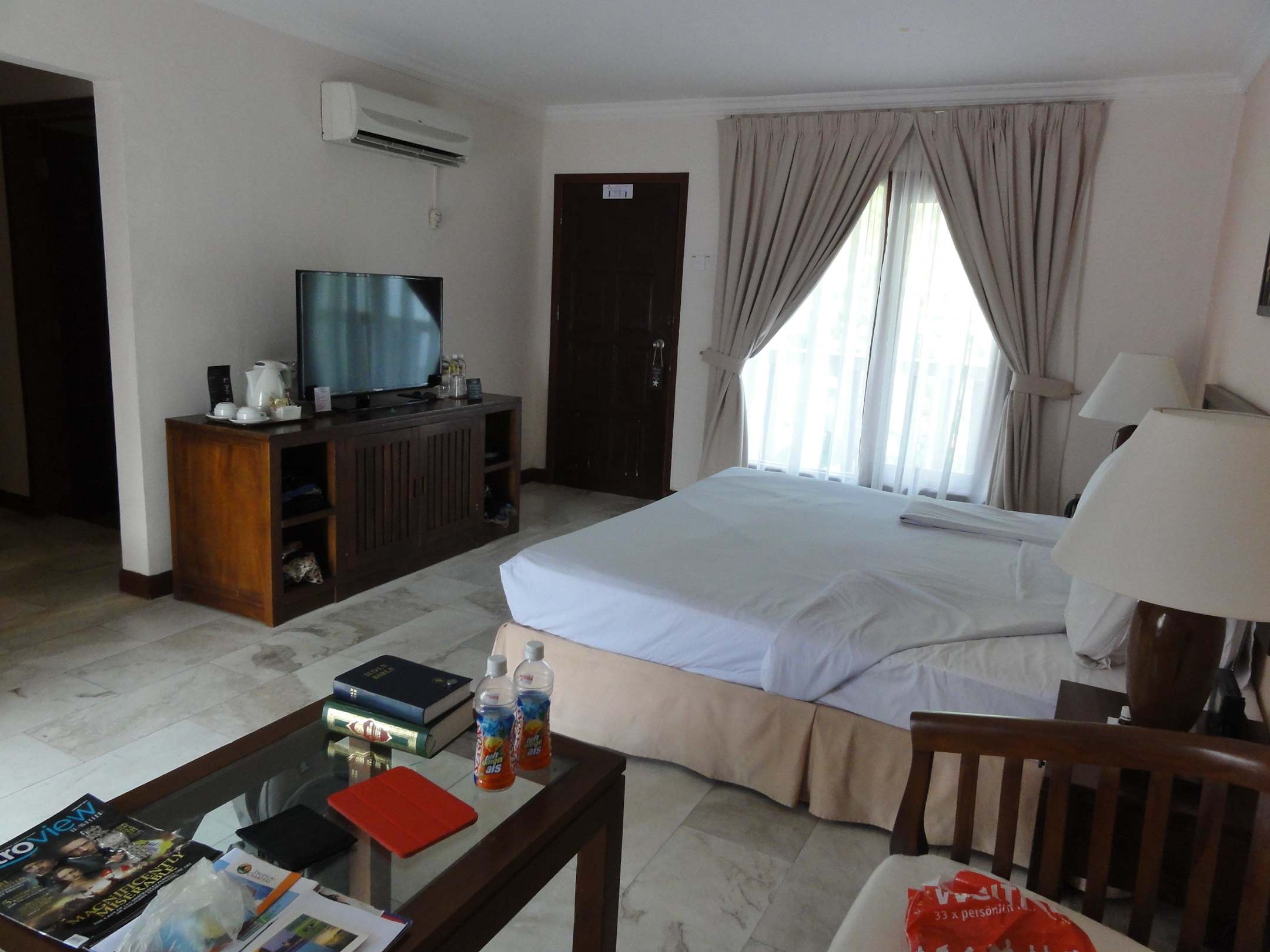 Zimmer N° 141Kommode mit Ablageflächen und Flachbild-Fernseher, wobei wirklich nichts gutes läuft!