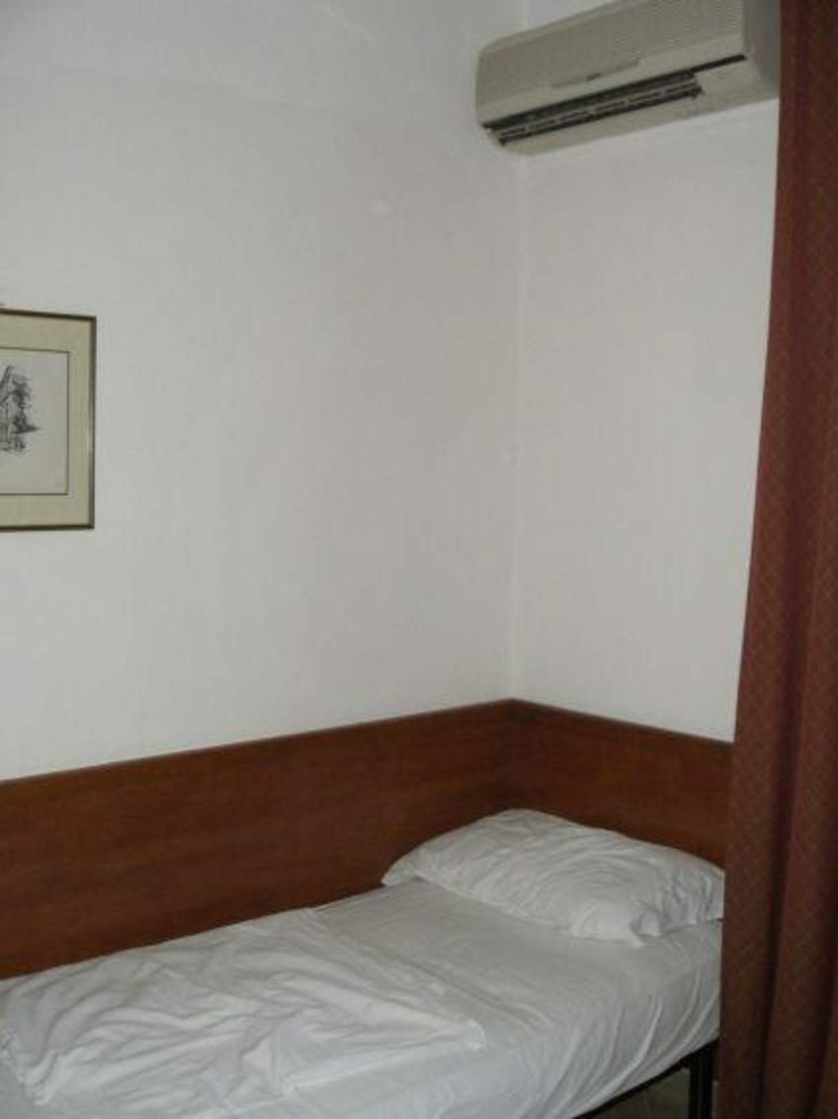 Кровать с кондиционером над ней.