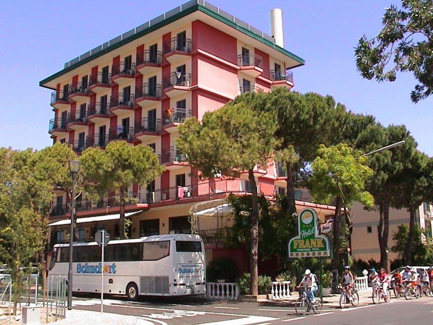 Lido di Jesolo, Blick auf das Hotel Frank von einer der Querstraßen aus.