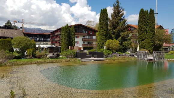 Wer möchte darf draußen im Teich schwimmen.
