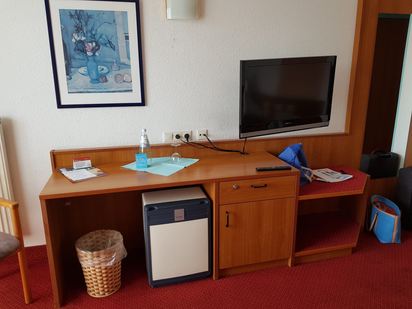 Schreibtisch mit Minibar und TV