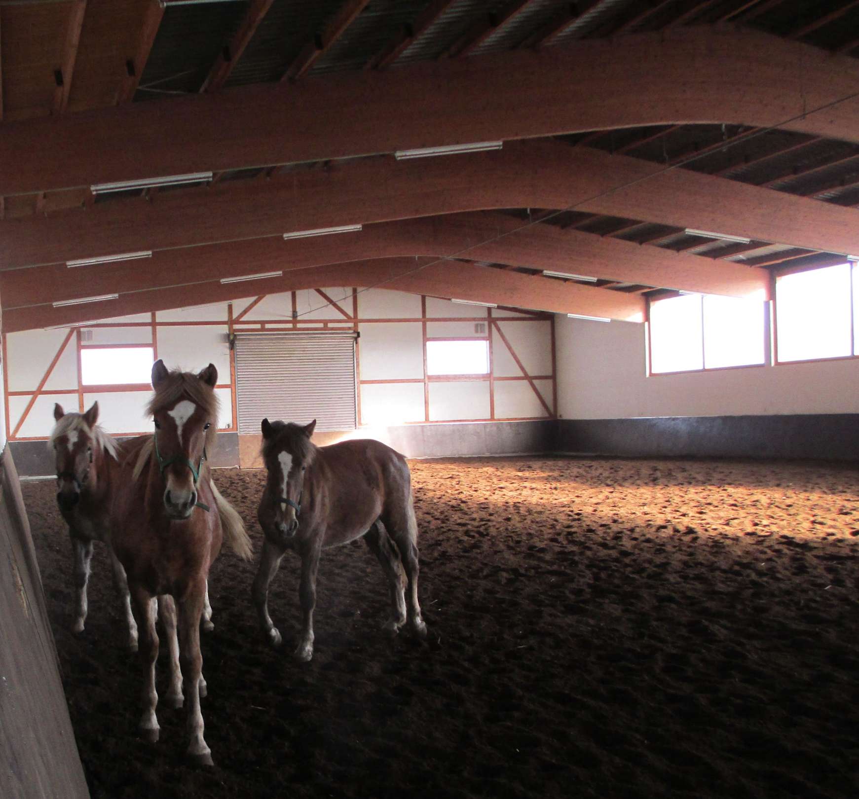 Drei Fohlen in der Reithalle