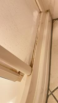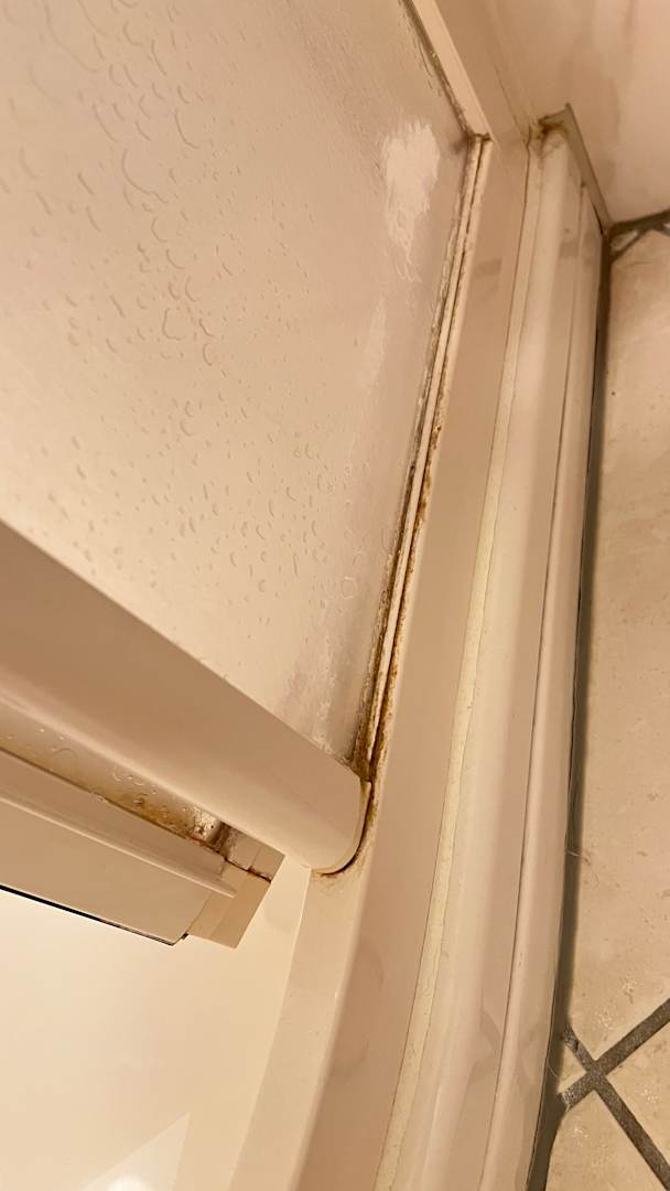 Duschkabine von außen, sehr schmutzig.