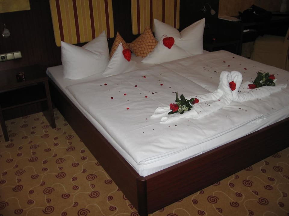 Nett dekoriertes Bett
