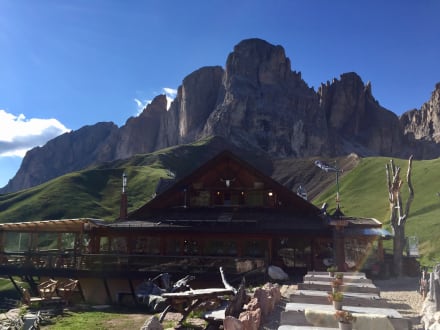 Außenansicht mit Blick auf den Plattkofel
