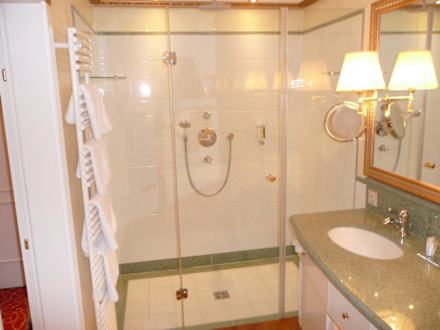 Das Bad mit großer Dusche und Badewanne