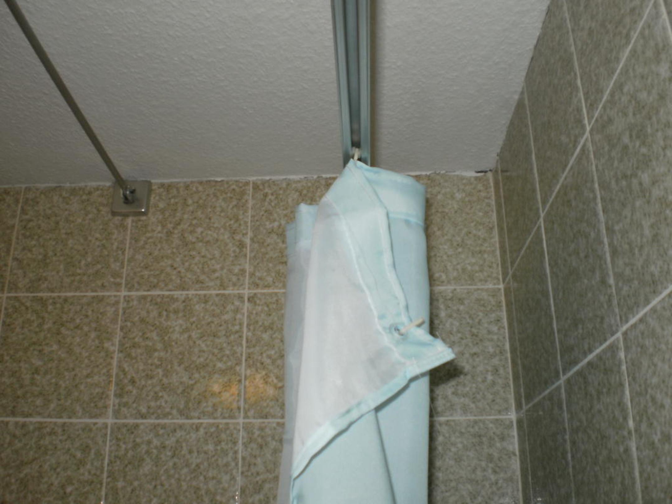 Für den Duschvorhang fühlte sich auch keiner Verantwortlich,der hing aus der Schiene.