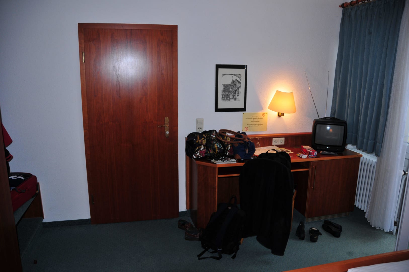 Eingang mit Schreibtisch, aber nur ein Stuhl vorhanden