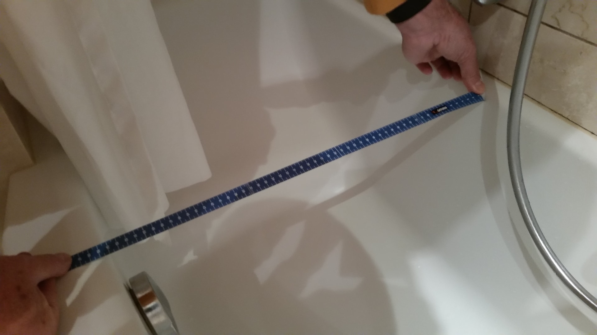 max. 54cm breite Wanne, den Duschvorhang hatte man immer direkt am Körper