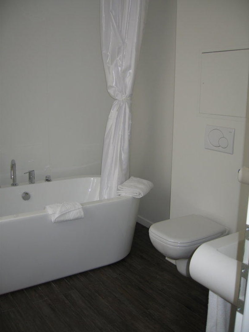 Badezimmer vom Zimmer aus gesehen.