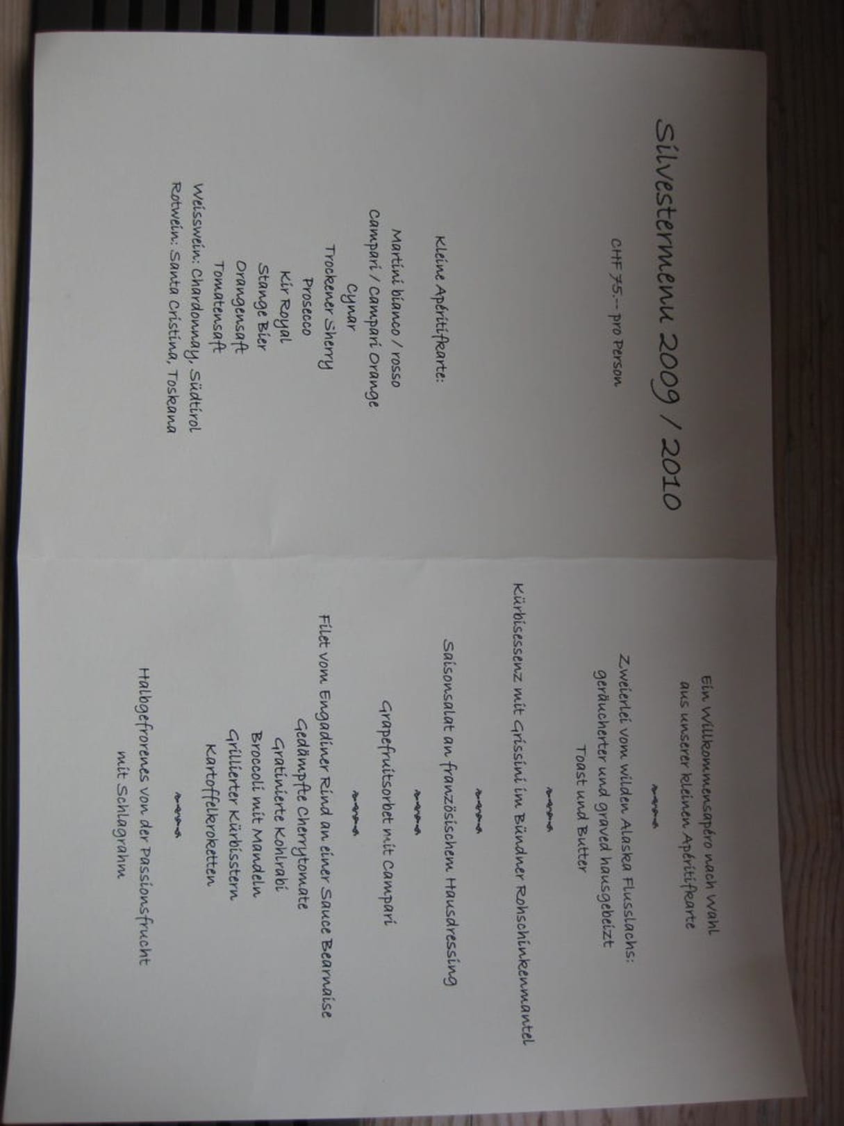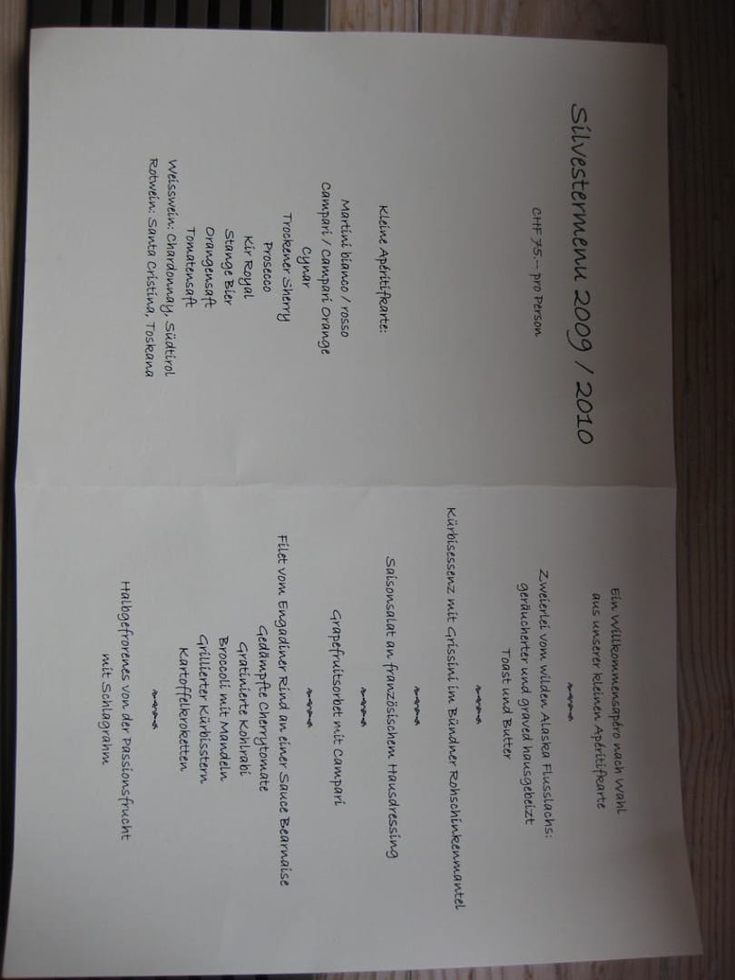 Menükarte zu Silvester