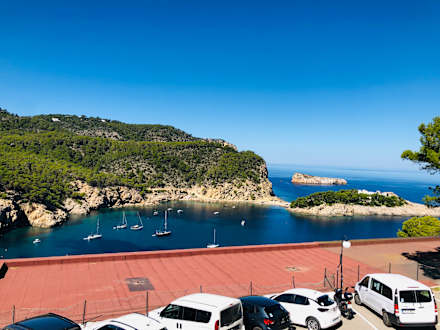 Parkplatz vom Hotel mit Blick auf die bucht
