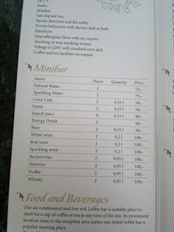 Preisliste des Hotels