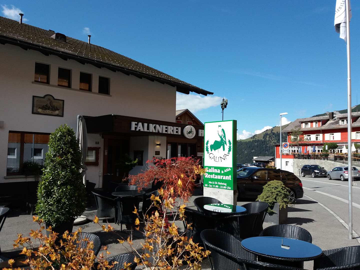 Vor dem Hotel ist der Eingang