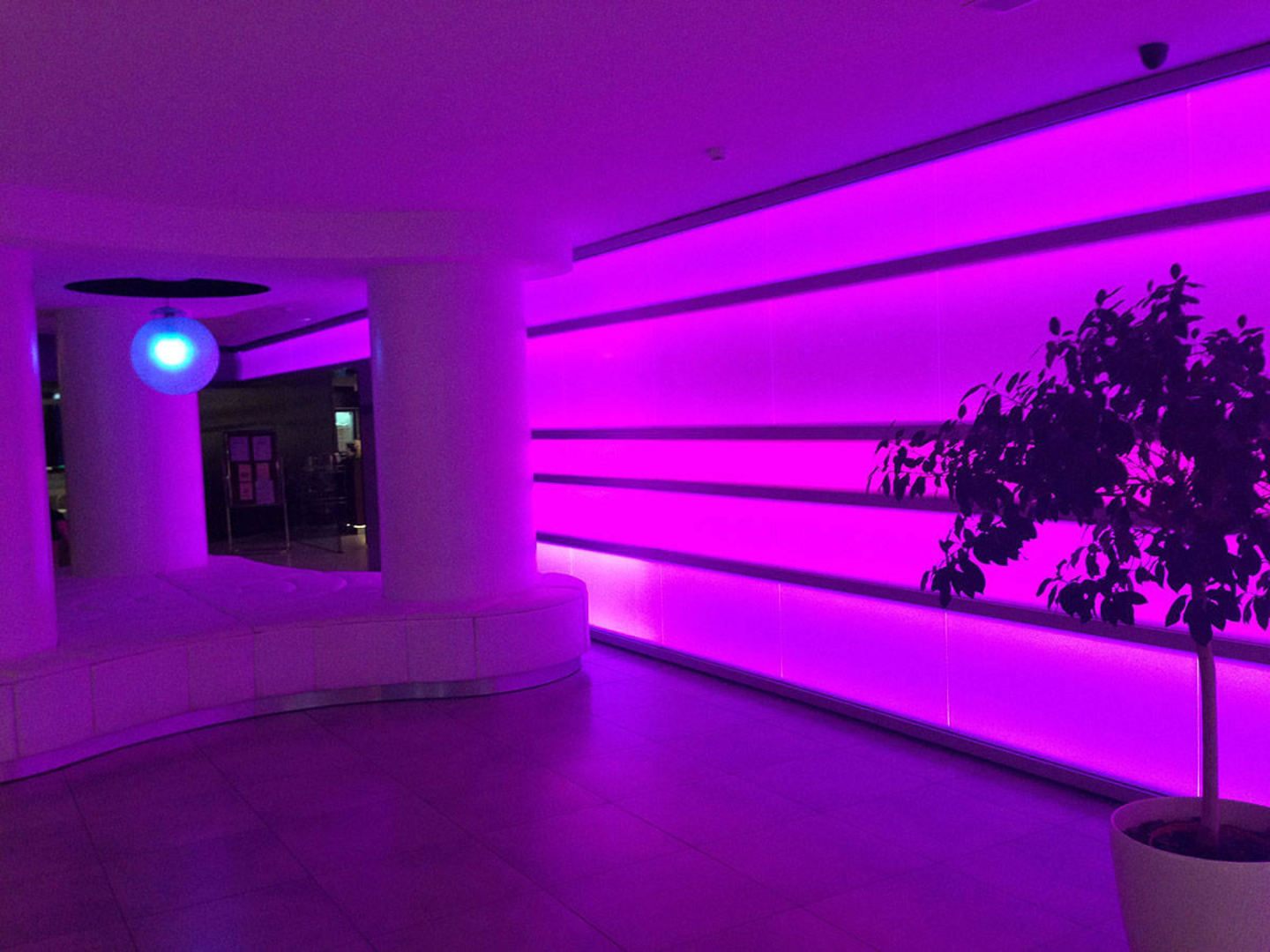 Tolle Beleuchtung. Diese wechselt von Blautönen über Grün bis Pink