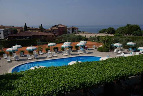 Blick auf Pool und Gardasee
