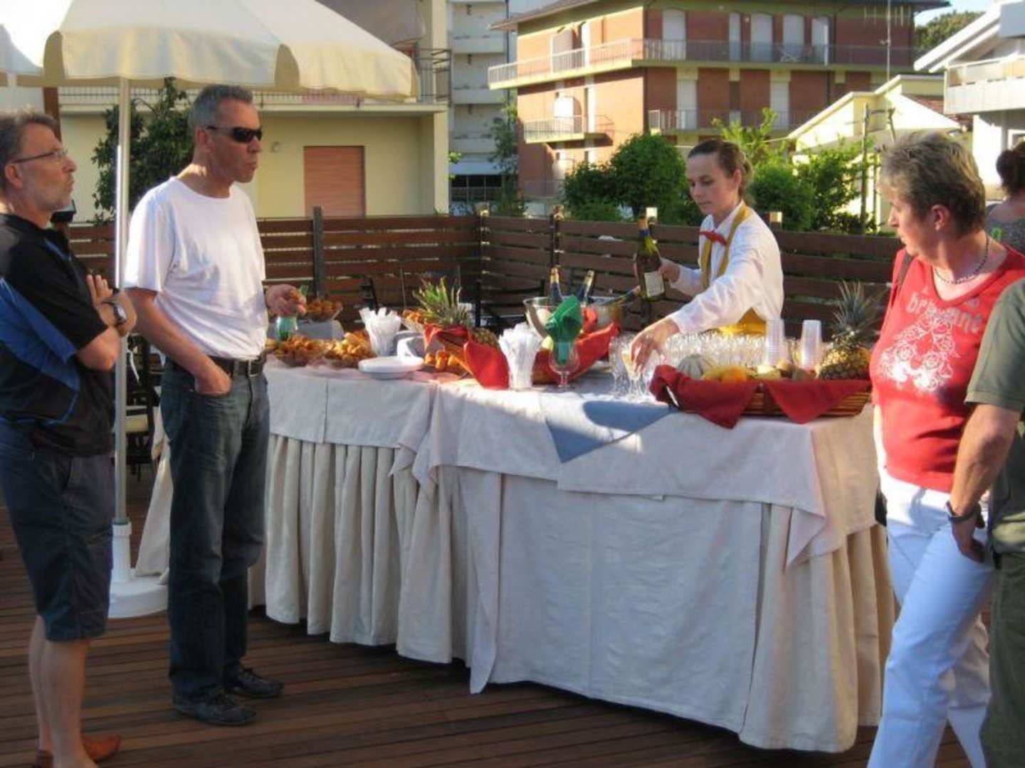 Sektempfang auf Pool-Deck.