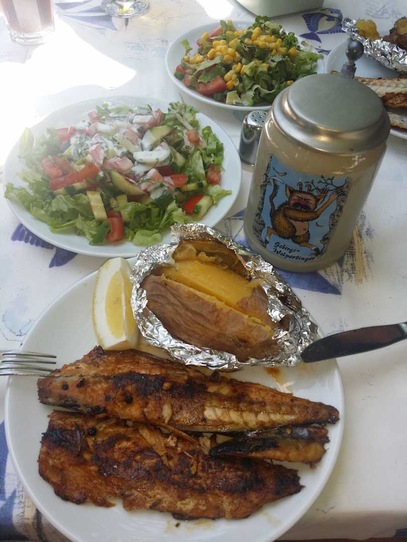 Strand Restaurant lecker Fisch mit Folienkartoffel