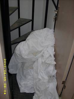 Fluchtweg voll mit Handtüchern