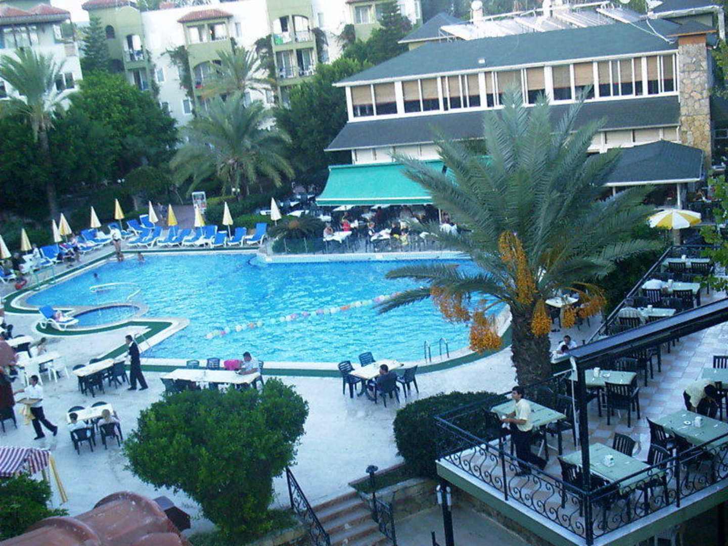 Poolanlage mit Restaurant vom Zimmer