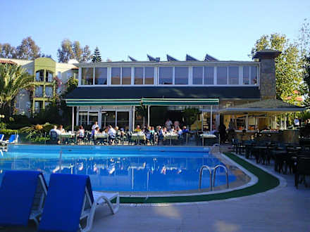 Der Hauptpool und das Restaurant (re: Bar)
