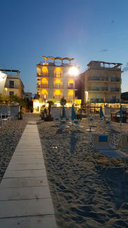 Hotel Igea Marina Blick vom Strand auf das Hotel