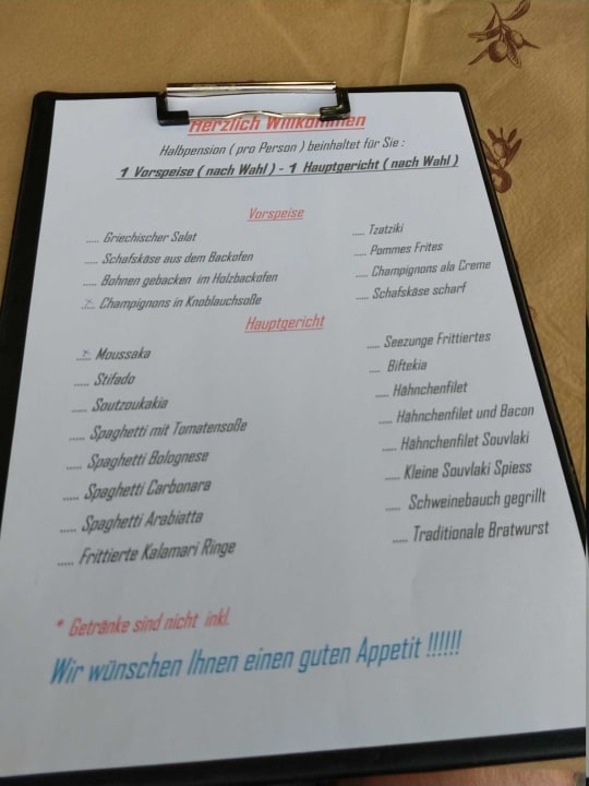 Eingeschränkte Speisekarte für Gäste mit gebuchter Halbpension