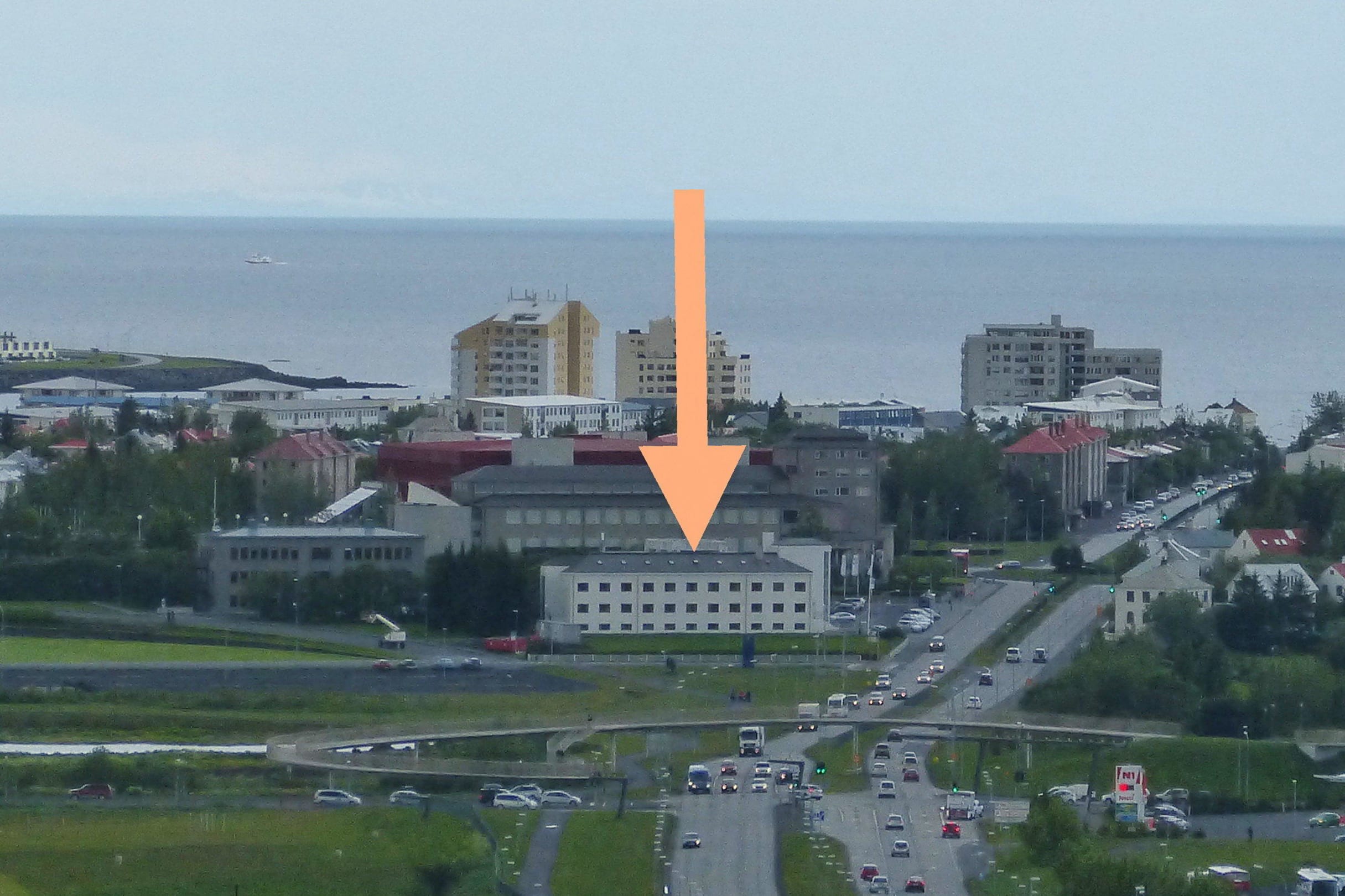 Hotel vom Turm der Perla fotografiert, bei Regen