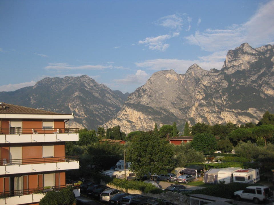 Ausblick vom Balkonvorne beobachtet man das Treiben auf dem Campingplatz, im Hintergrund erkennt man die alte Ponalestraße