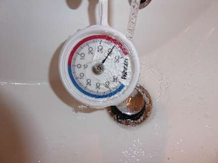 Selbst nach 10 min erreichte das sog. HEIß-Wasser nur eine Temperatur von 41° C.
