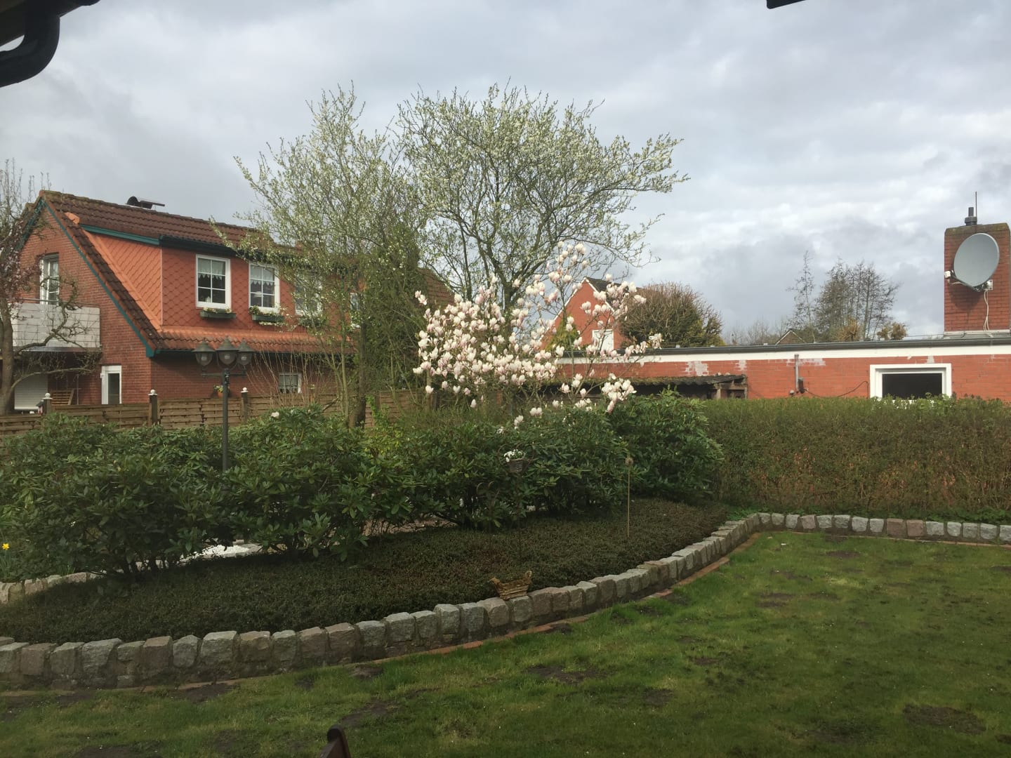 Blick von der Terrasse auf die Liegewiese